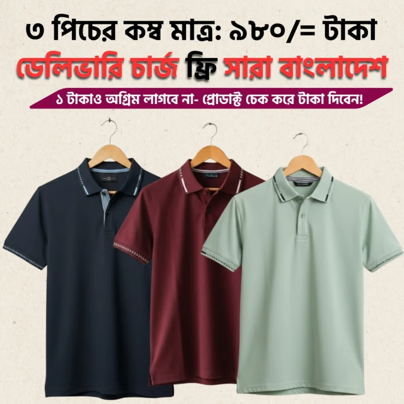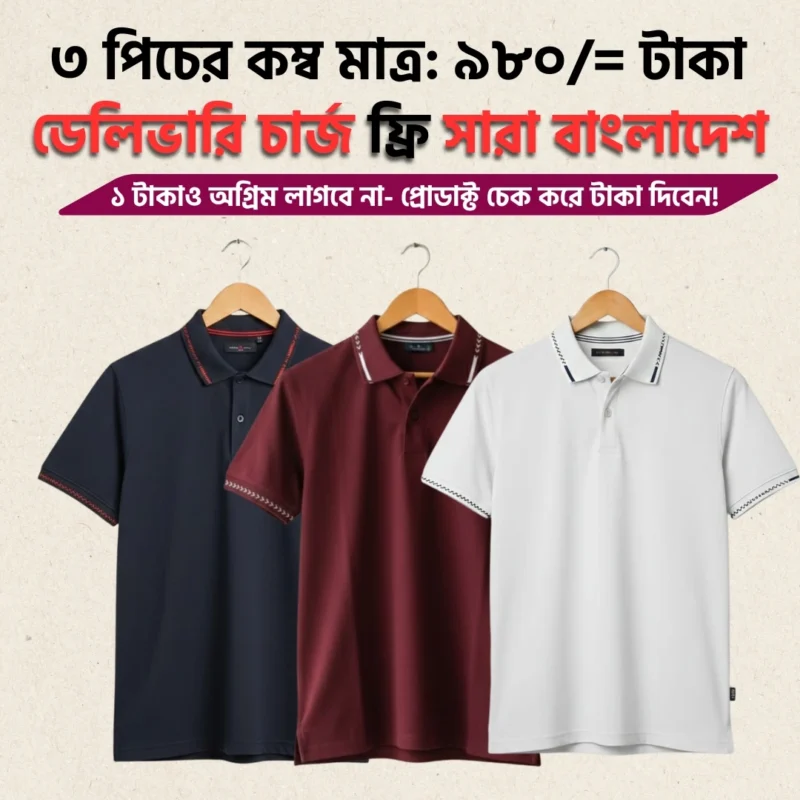 চায়না পিকে কাপড়ের পোলো সার্ট কম্ব (৩ পিচ) ( code: 01)