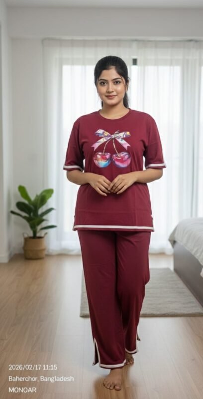 সাইট কাটিং ১ পিচ মেরুন প্যান্ট এবং ১ পিচ মেরুন টিশার্ট Combo