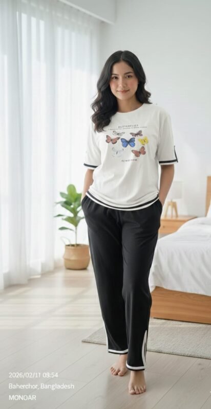 সাইট কাটিং ১ পিচ কালো প্যান্ট এবং ১ পিচ সাদা টিশার্ট Combo