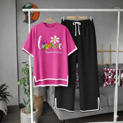 সাইট কাটিং ১ পিচ কালো প্যান্ট এবং ১ পিচ পিংক টিশার্ট Combo