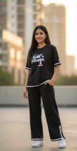 সাইট কাটিং ১ পিচ কালো প্যান্ট এবং ১ পিচ কালো টিশার্ট Combo