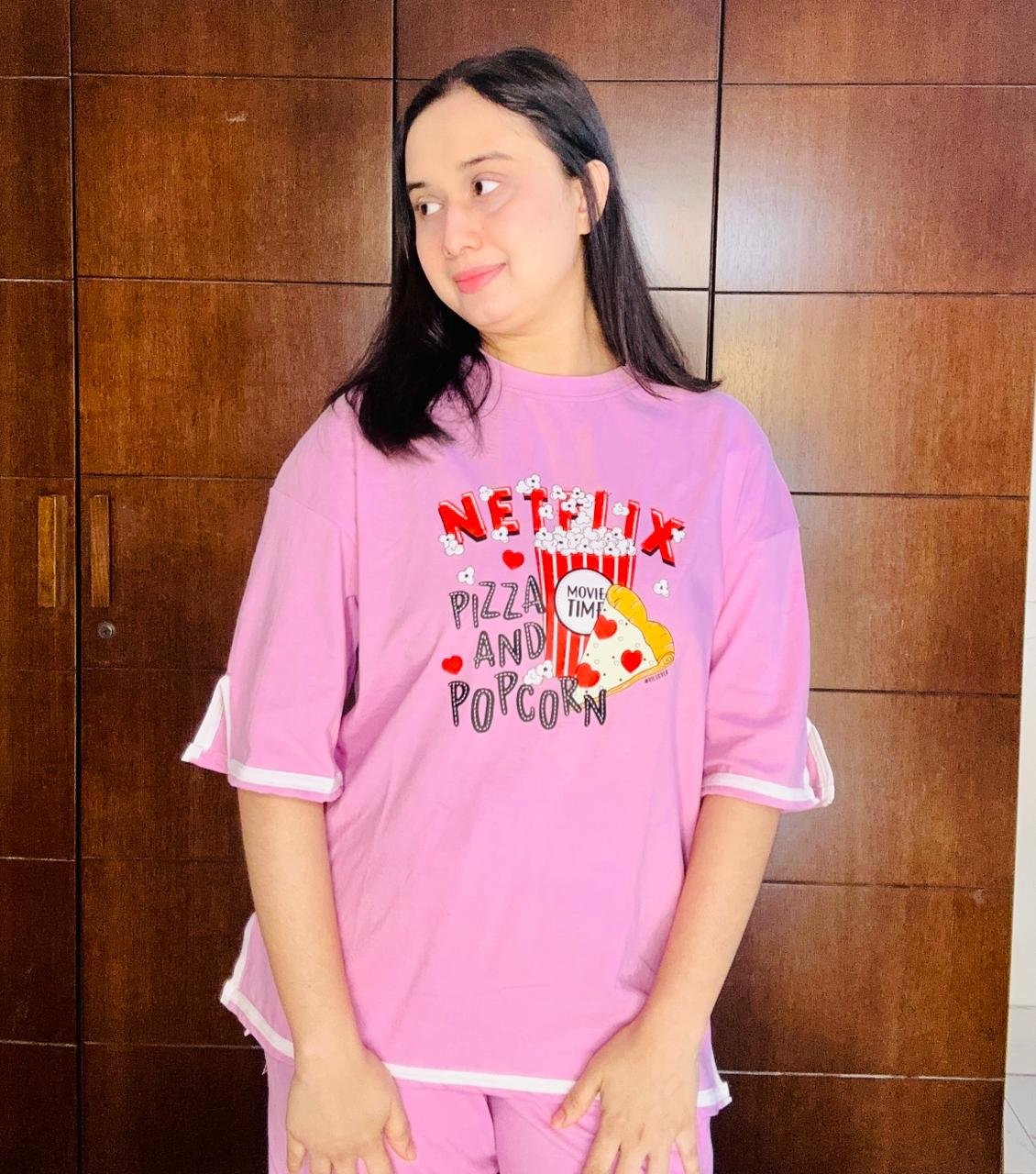 সাইট কাটিং ✂️ ড্রপ-শোল্ডার টি-শার্ট সেট (Light purple)